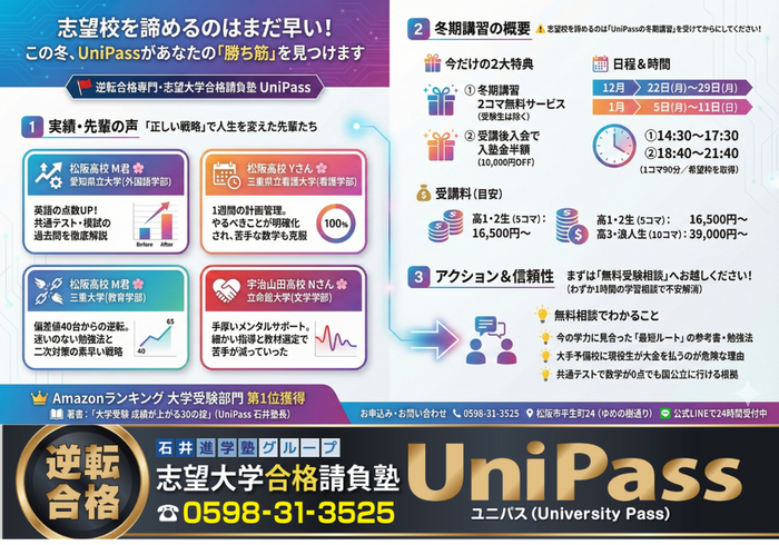 志望大学合格請負塾 ユニパス 冬期講習募集開始しました